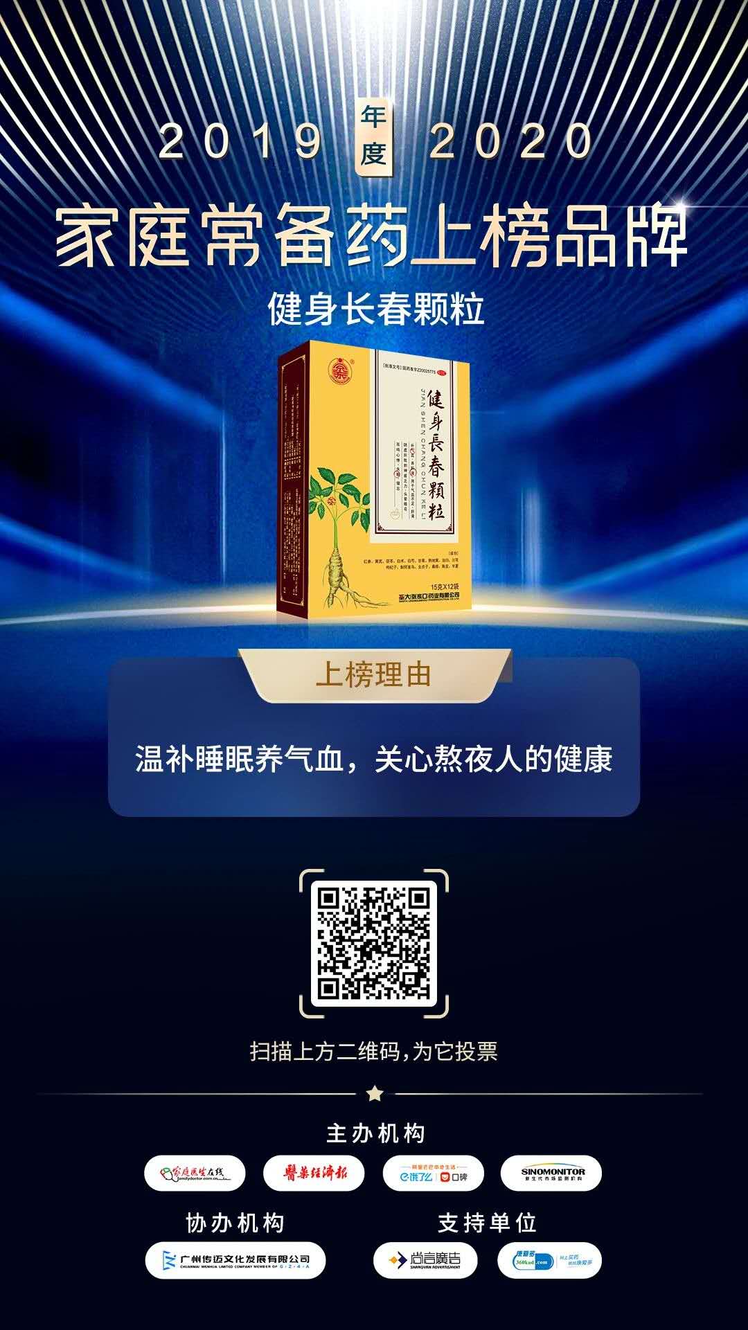 健身長春顆粒新品上市首次榮登“2019-2020中國家庭常備藥上榜品牌”,表明了市場對“亞健康”的高度重視,也是對補益類產(chǎn)品回歸藥品本源的高度認(rèn)可。