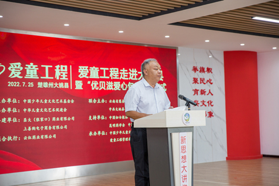 本次活動由中國少年兒童文化藝術(shù)基金會主辦;云南省慈善總會、中共大姚縣委、大姚縣人民政府聯(lián)合主辦;中國少年兒童文化藝術(shù)基金會愛童工程管理委員會承辦,圣大(張家口)藥業(yè)有限公司作為共建單位提供志愿服務(wù)。