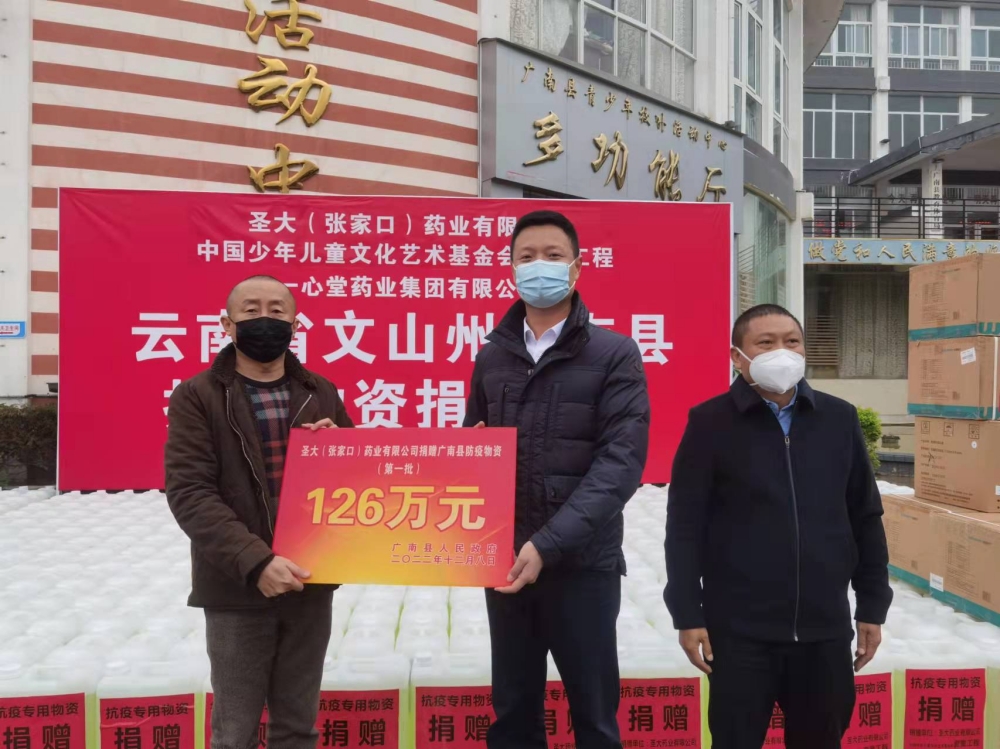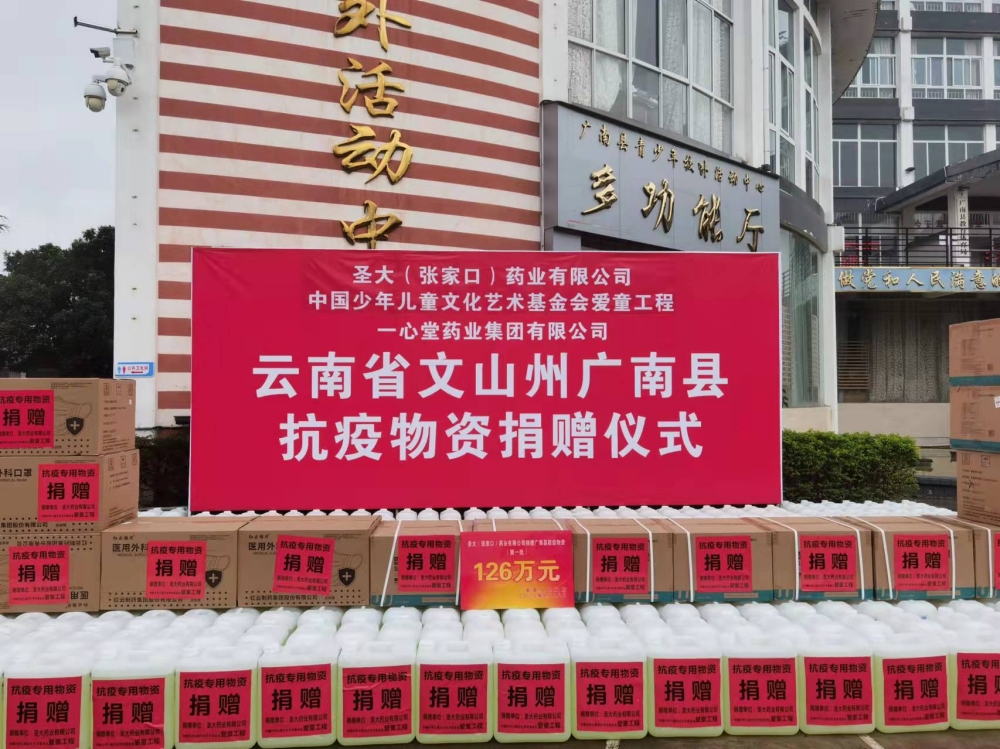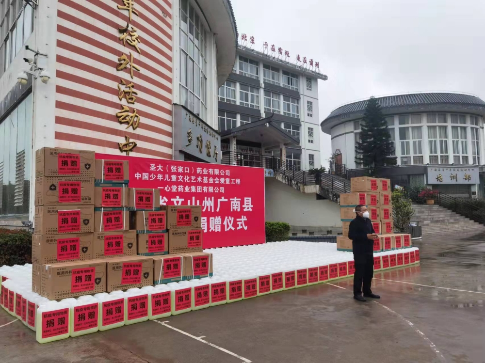 愛童工程共建單位——圣大(張家口)藥業(yè)有限公司在了解到這個情況后,向戰(zhàn)略合作伙伴、一心堂藥業(yè)集團有限公司緊急采購價值126萬元醫(yī)療應急物資,通過愛童工程捐贈給廣南縣教體局,用于全縣400余所中小學、幼兒園的疫情防控工作。