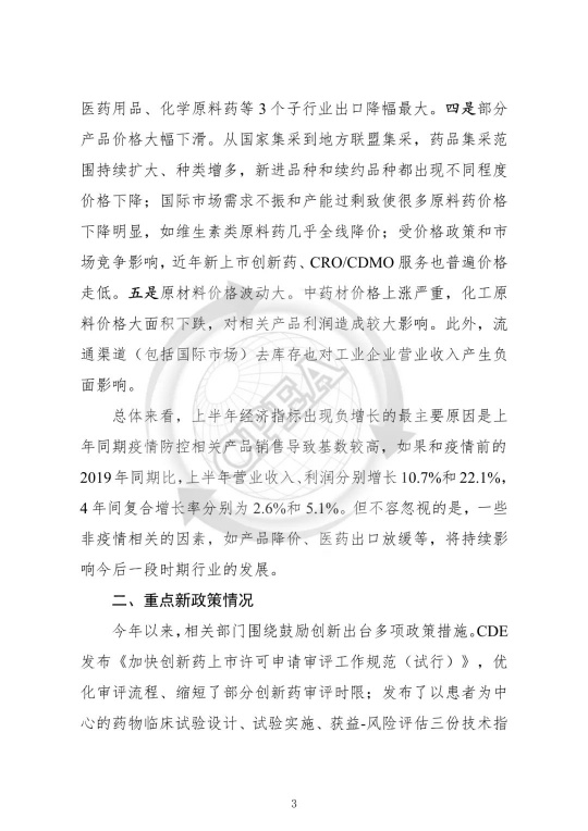 2023年上半年醫(yī)藥工業(yè)運(yùn)行情況