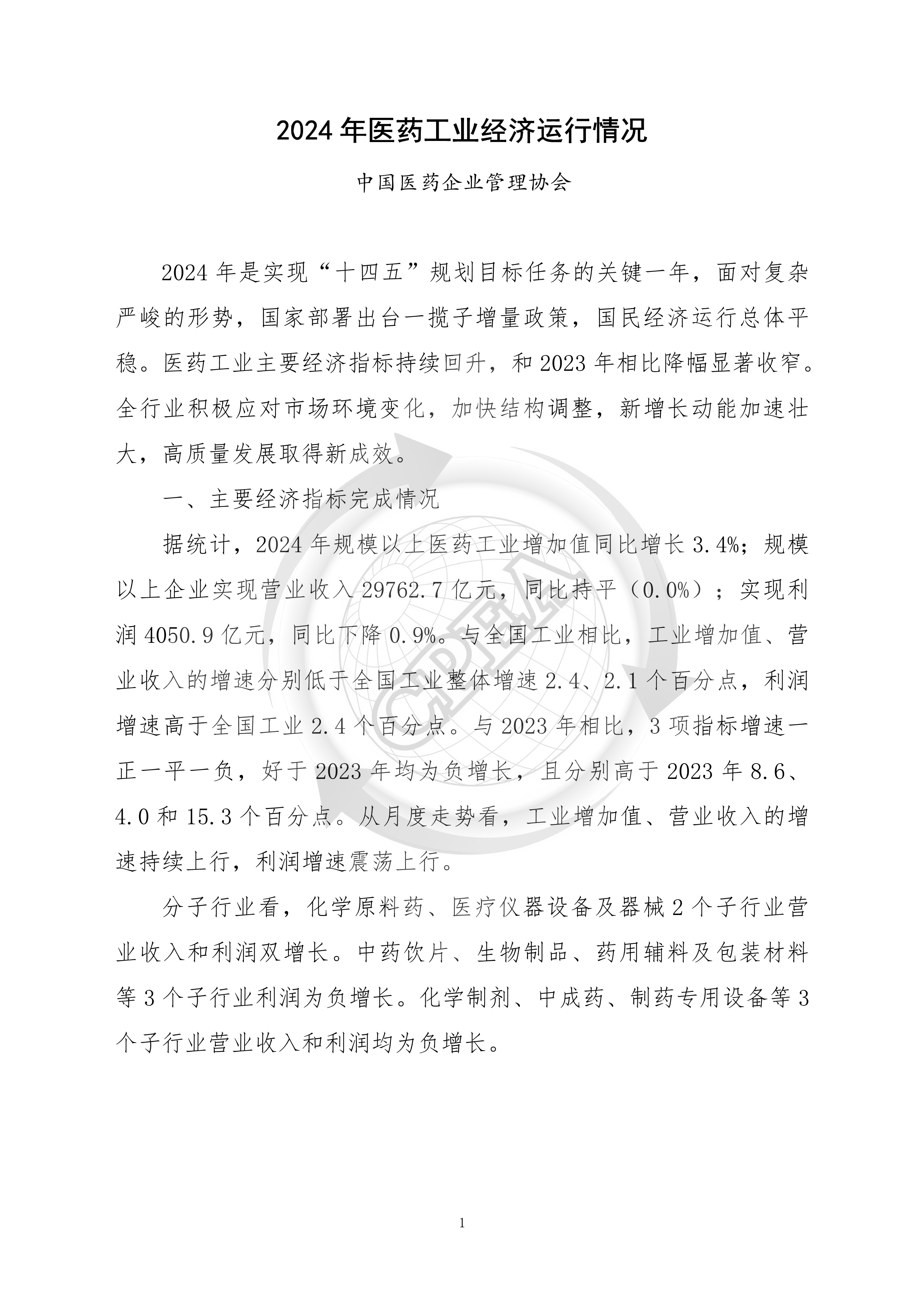 2024年醫(yī)藥工業(yè)經(jīng)濟(jì)運(yùn)行情況